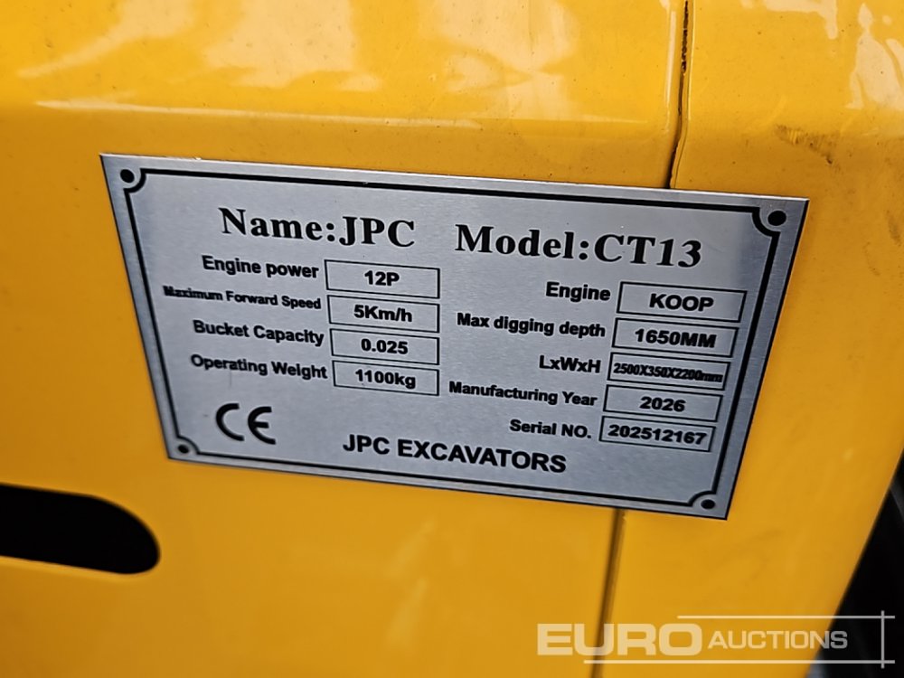 Unused 2026 JPC CT 13 Rubber Tracks, Blade, Piped, Bucket - 140529460