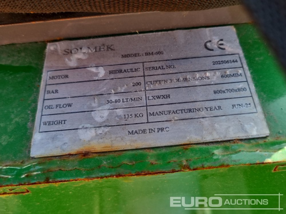 Unused 2025 Solmek BM-600 Hydraulic Flail Mower 40mm Pin to suit Mini Excavator - 202506144