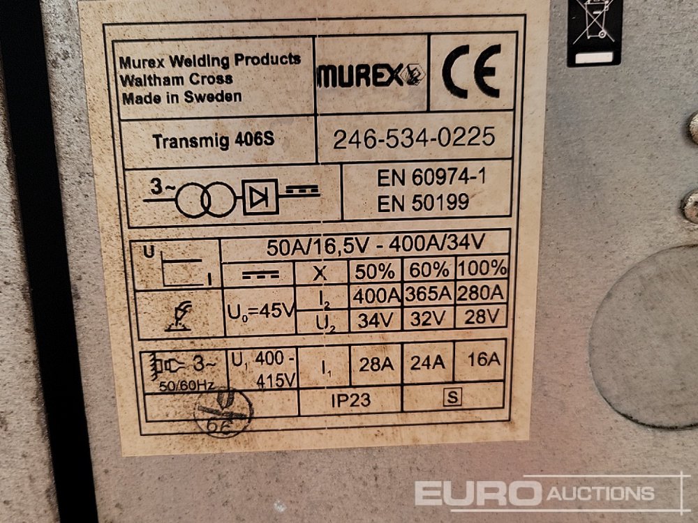 400V Murex Transmig 406S Welding Machine & Murex Transmatic Lynx 4HD Wire Feeder - 140530453