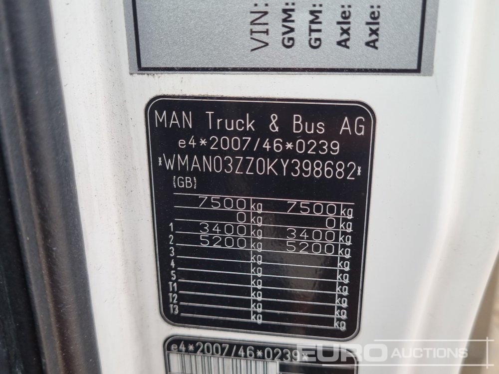 2019 MAN TGL7.160 4x2 Curtainsider Lorry, Tuck Away Tail Lift, Manual Gearbox (Tested 12/26) - NV19 YEU - WMAN03ZZ0KY398682