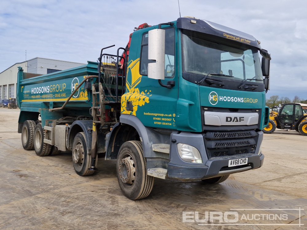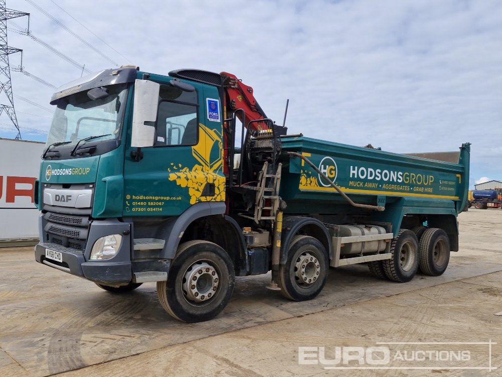 2018 DAF CF450 8x4 Tipper Lorry, Palfinger M125L Hydraulic Crane, Hydraulic Rotating Clam Shell Bucket, Abba Body, Easy Sheet, 360 Camera, WLI, A/C, Manual Gearbox (Reg. Docs. Available, Tested 01/27) - AV68 CHD - XLRADM4100G22426