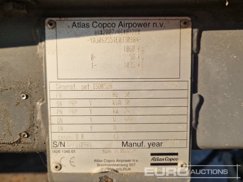 2014 Atlas Copco QAX30 30kVA Single Axle Generator - APP330984