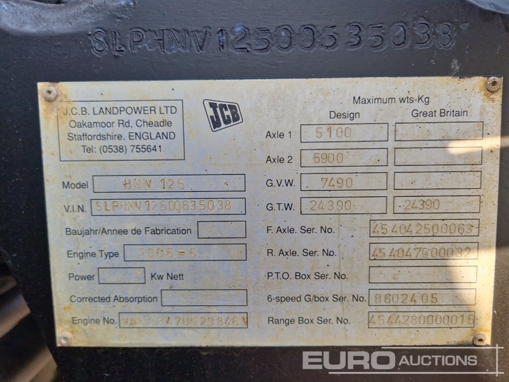 JCB FASTRAC HMV125 Tractor - SLPHMV12500635038