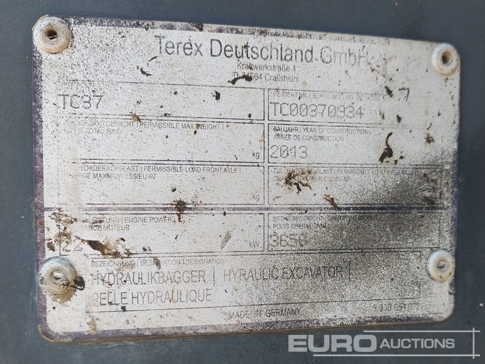 2013 Terex TC37 Rubber Tracks, Blade, Offset, QH, Piped, 2 Buckets - TC00370934