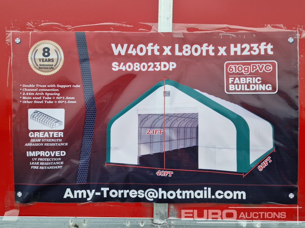Unused Golden Mount 408023DP PVC Peak Storage Shelter, Peak Roof Frame, 40' x 80' x 23' - 300076