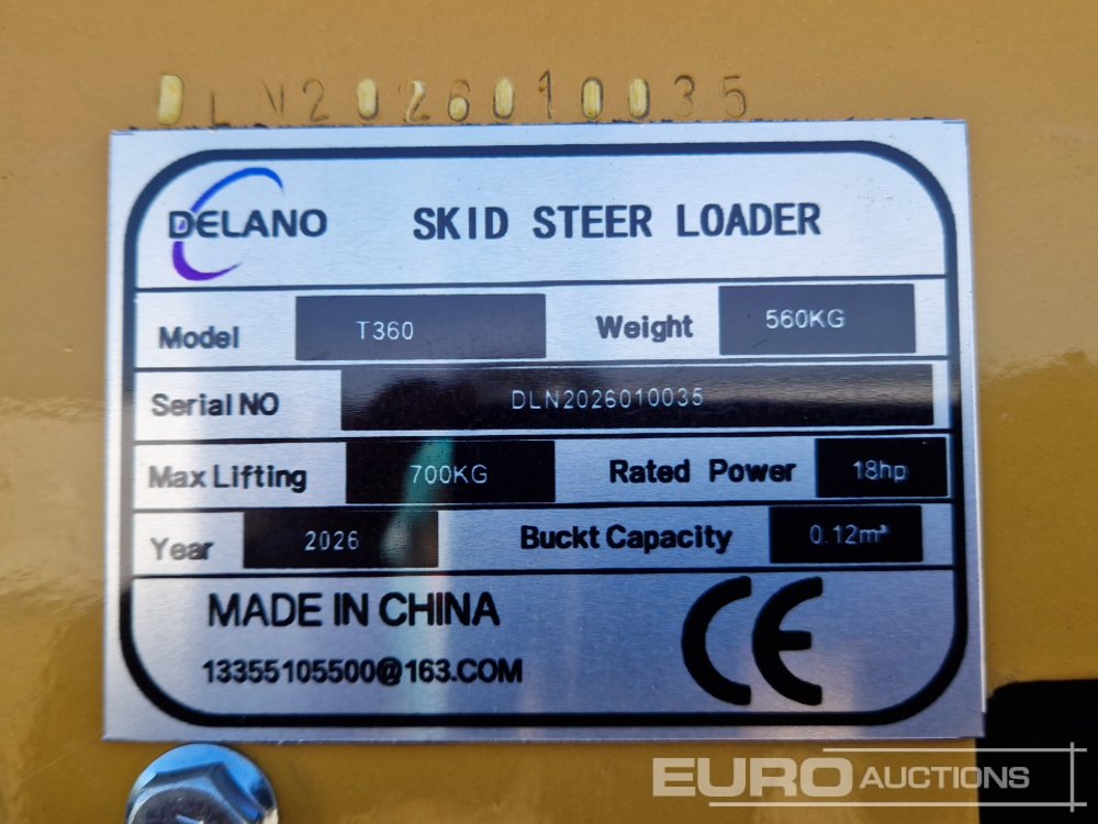 Unused 2026 Delano T360 Tracked Pedestrian Skidsteer Loader, Piped, Bucket (Third Party Certificate of Conformity Available) - DLN2026010035