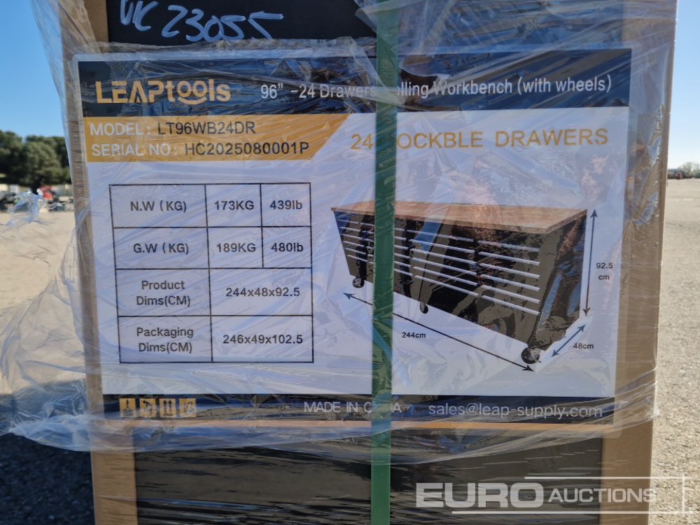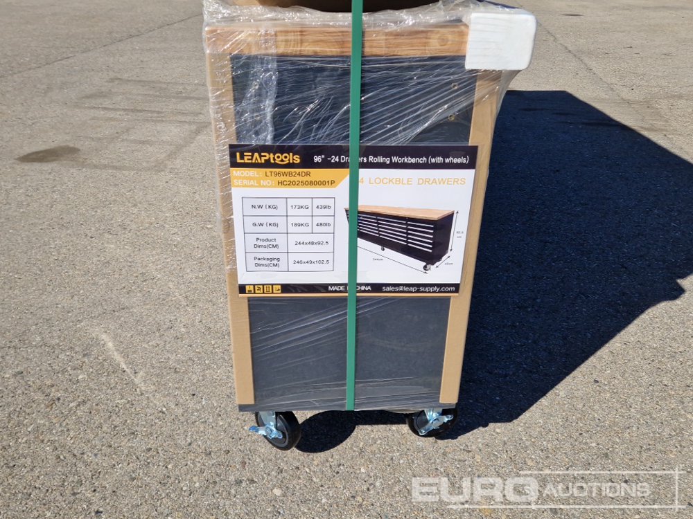 Unused 2026 LEAPTOOLS LT96WB24DR 96"-24 Drawers Rolling Workbench c/w Wheels - HC2025080001P
