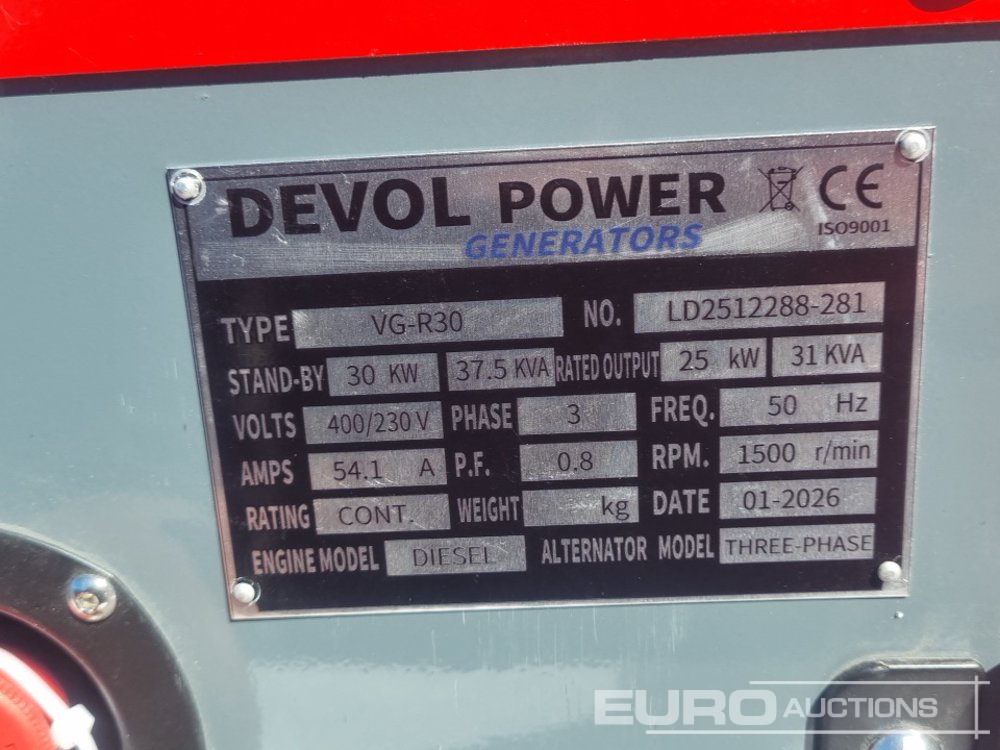 Unused 2026 Devol VG-R30 30kW Generator - LD2512288281