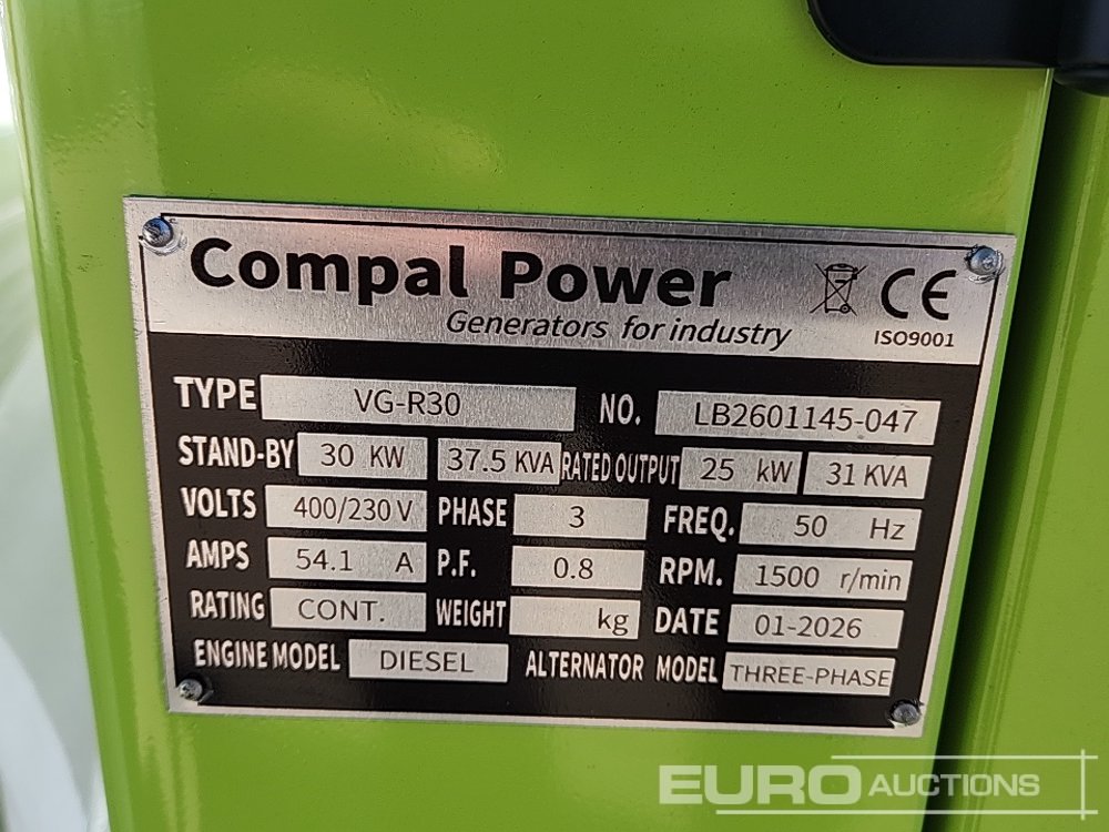 Unused 2026 Compal Power VG-R30 30KW Generator - LB2601145047