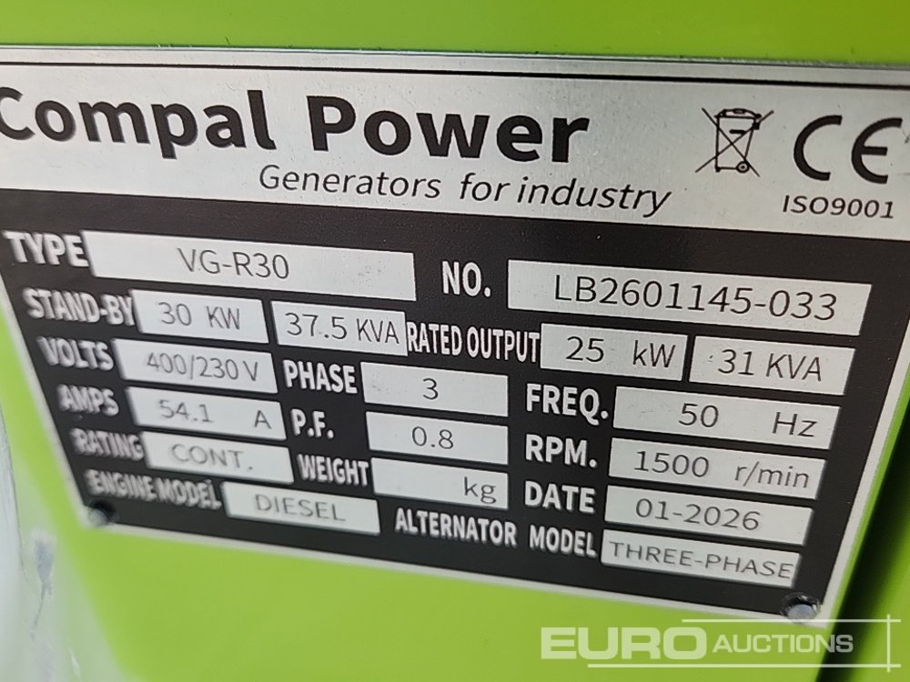 Unused 2026 Compal Power VG-R30 30KW Generator - LB2601145033