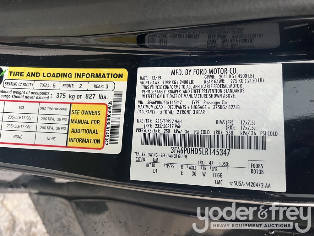 2020 Ford Fusion SE, EcoBoost, 4 Cylinders D 1.5L DI Turbo DOHC 091 CID, Nav, Back up camera (Meter Reading: 106060 Miles) - 3FA6P0HD5LR145347