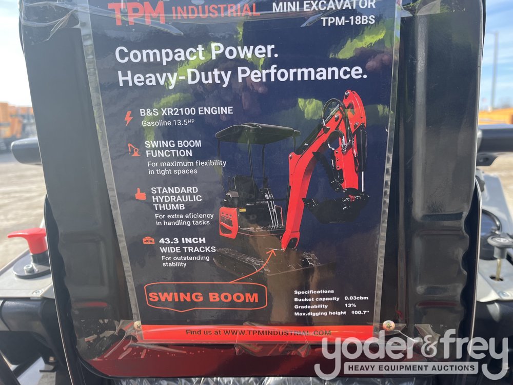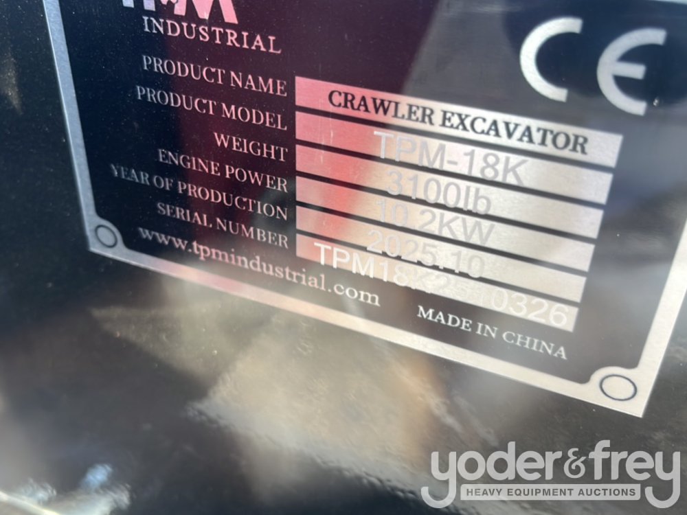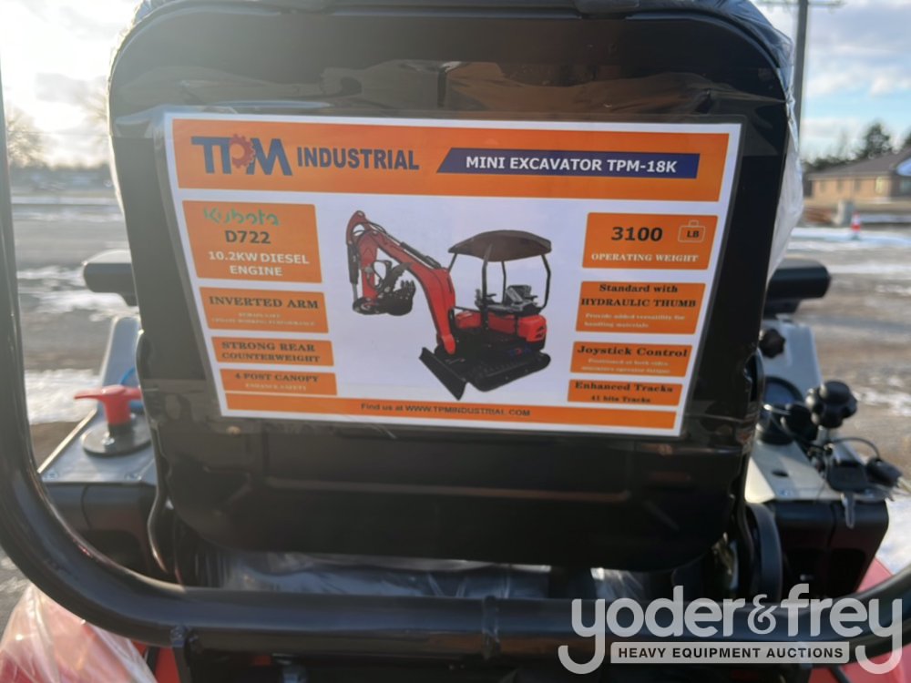 Unused TPM TPM-18K Mini Hydraulic Excavator, Kubota D722, 10.2KW, 3 Cylinder Diesel Engine, 43.3" Chasis, 41 bits longer tracks, Rear Counterweight, Auxiliary Hydraulic Pilot Guide Control System, 15" Dig Bucket, Heat Radiator - TPM18K2510326