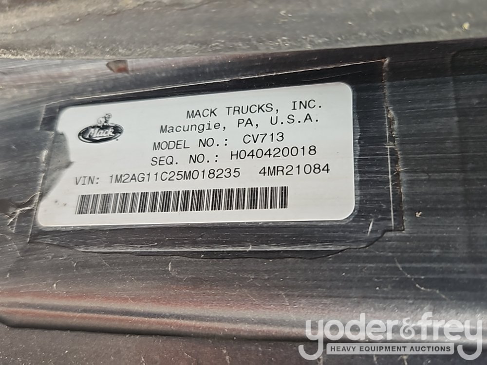 2005 Mack CV713 GRANITE 8x4 Tri Axle Dump Truck, 12L 6 Cylinder Engine, Allison Automatic Transmission, Mid Lift Axle, A/C - 1M2AG11C25M018235