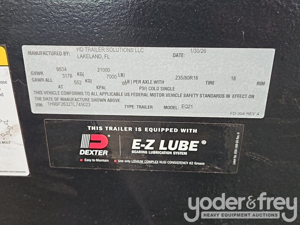 Unused 2026 HDTS 7' x 26' 21,000LB (24' + 2' ) (6"+10" Between the Fenders) Tandem 7k Dexter Braking Axles - 1H9BF2632TL745023