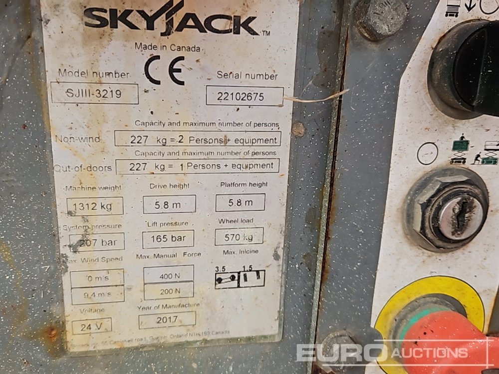 2017 SkyJack SJ3219 Electric Scissor Lift, 7.92m Working Height, 227kg Platform Capacity, Extending Deck, Non Marking Tyres - 22102675