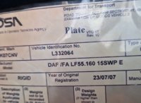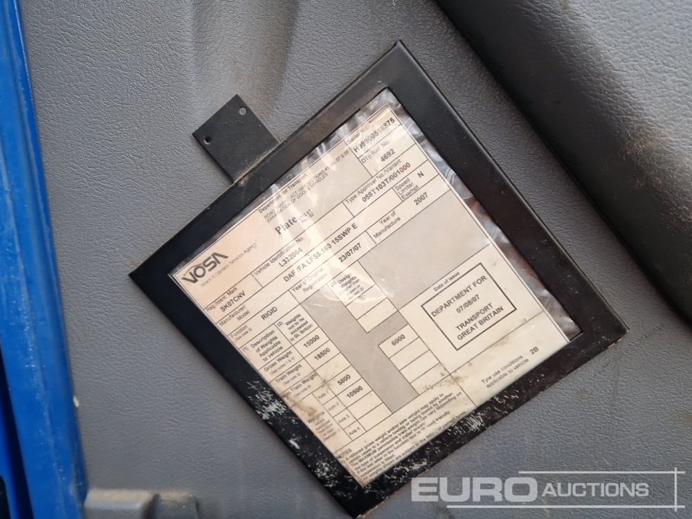 DAF LF55.160 4x2 Sweeper Lorry, Johnston Body, Automatic Gearbox (Fuel Issues) - SK07 CNV - XLRAE55FF0L332064