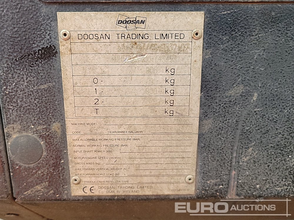 2017 Doosan 741 140CFM Single Axle Compressor - UN5741FXXHY434531