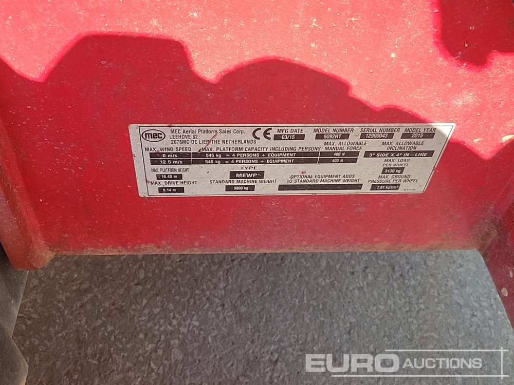 2015 MEC 6092RT 4x4 Diesel Scissor Lift, 20.2m Working Height, 540kg Platform Capacity, Double Deck Extensions, Stablisers (Electrical Fault) - 12900043