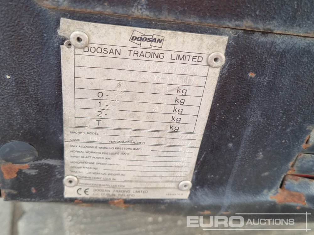 2017 Doosan 741 140CFM Single Axle Compressor - UN5741FXXHY434607