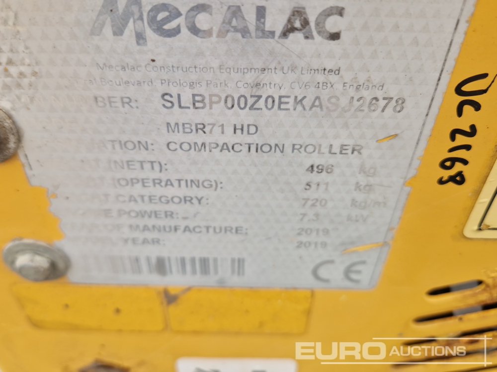 2019 Mecalac MBR71HD Single Drum Vibrating Pedestrian Roller - SLBP00Z0EKASJ2678
