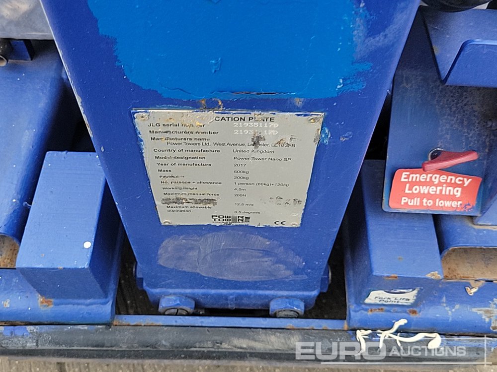 2017 Power Towers Nano SP Self Propelled Vertical Lift, 4.5m Working Height, 200kg Platform Capacity, Extending Deck - 21935117D