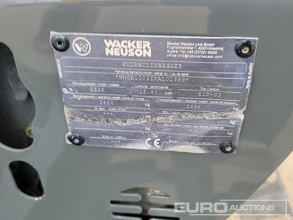 Wacker Neuson EZ26 Rubber Tracks, Blade, Offset, QH, Piped (Meter Reading: 492 Hours) - WNCE1003TPAL01389