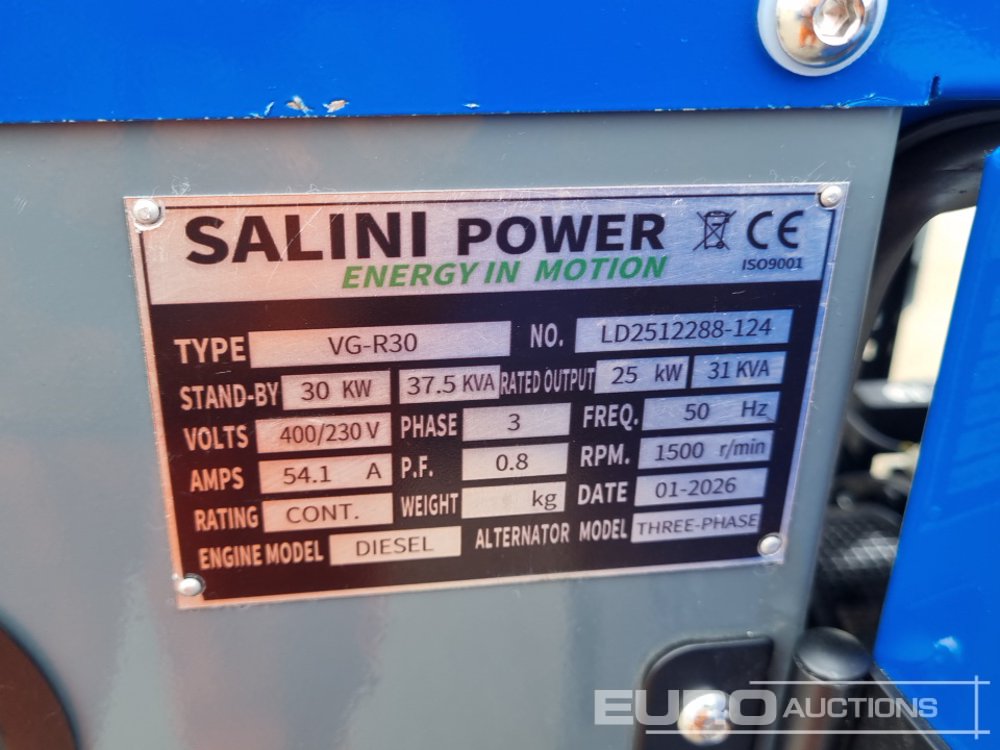 Unused 2026 Salini VG-R30 37.5kVA Generator, 4 Cylinder Engine - LD2512288124