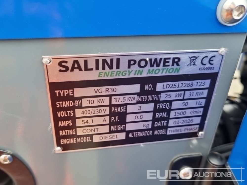 Unused 2026 Salini VG-R30 37.5kVA Generator, 4 Cylinder Engine - LD2512288123