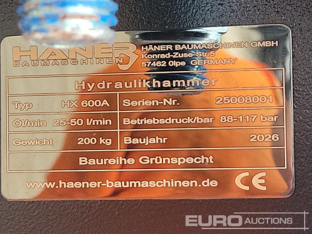 Unused 2026 Häner HX600A Hydraulic Breaker 35mm Pin to suit Mini Excavator - 25008001