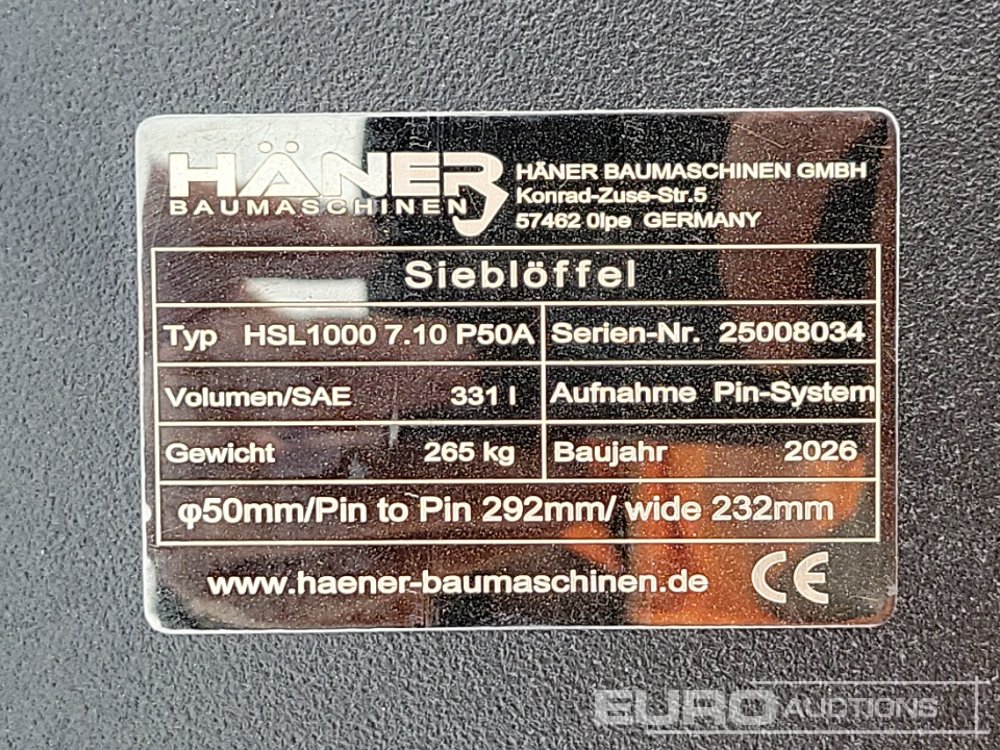 Unused 2026 Häner HSL1000 7.10P50A 40" Skeleton Bucket 50mm Pin to suit 6-8 Ton Excavator - 25008034