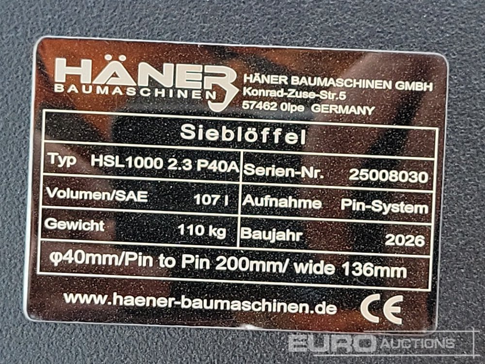 Unused 2026 Häner HSL1000 2.3 P40A 40" Skeleton Bucket 40mm Pin to suit Mini Excavator - 25008030