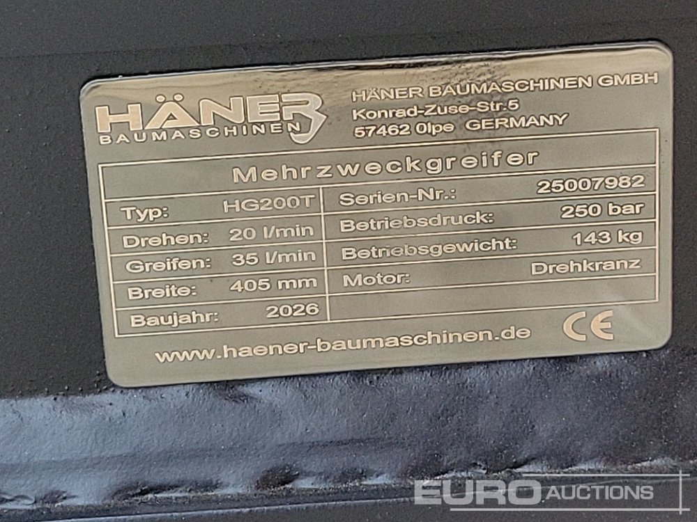 Unused 2026 Häner HG200T Hydraulic Rotating Selector Grab - 25007982