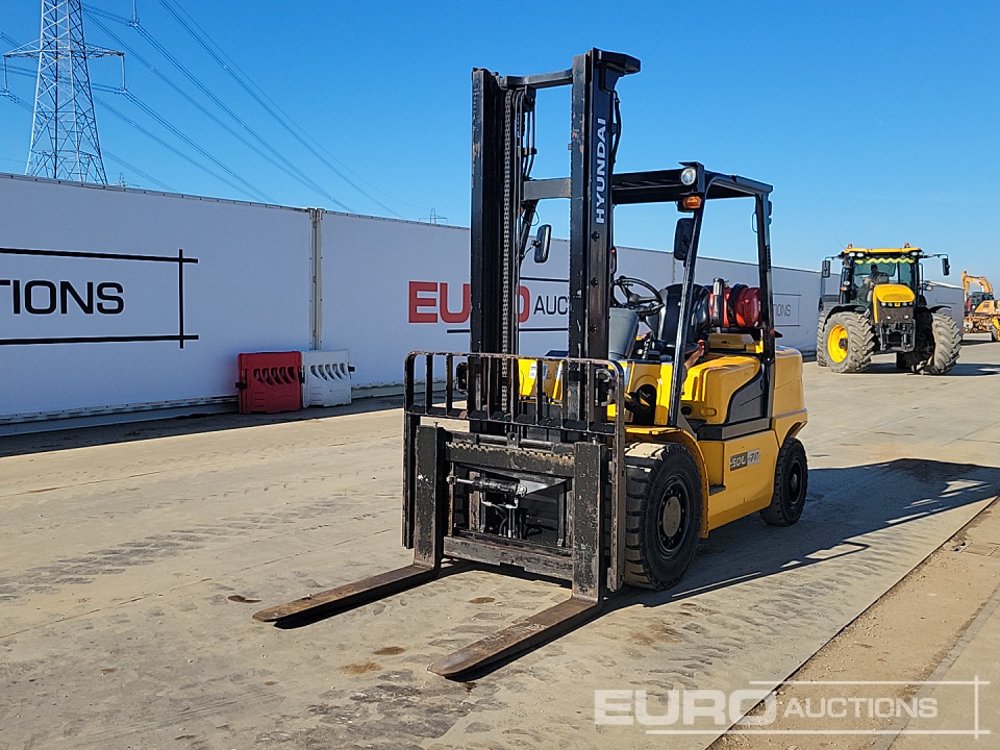 2018 Hyundai 50L-7A Gas Forklift, 2 Stage Mast, Side Shift, Forks (Meter Reading: 819 Hours) - HHKHHL07CJ0000339
