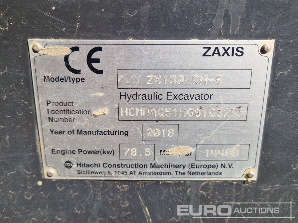 2018 Hitachi ZX130LCN-6