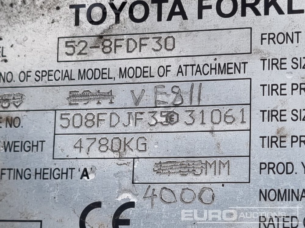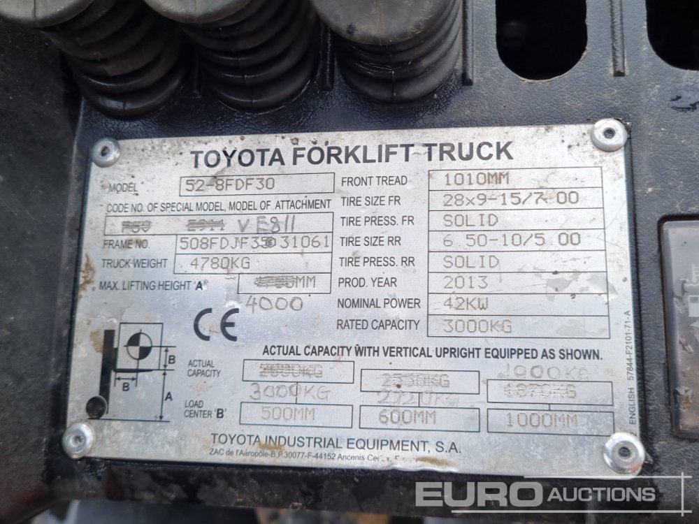 2013 Toyota 52-8FDF30 Diesel Forklift, 2 Stage Mast, Forks - E31061