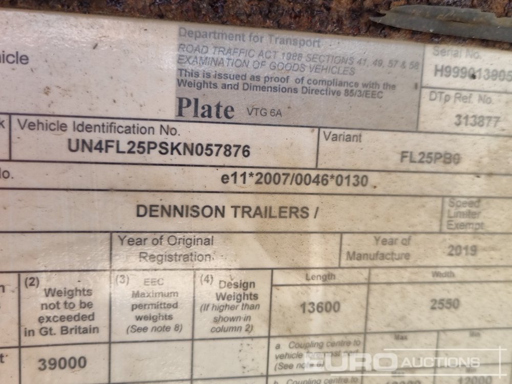 2019 Dennison Tri Axle Flatbed Trailer - UN4FL25PSKN057876