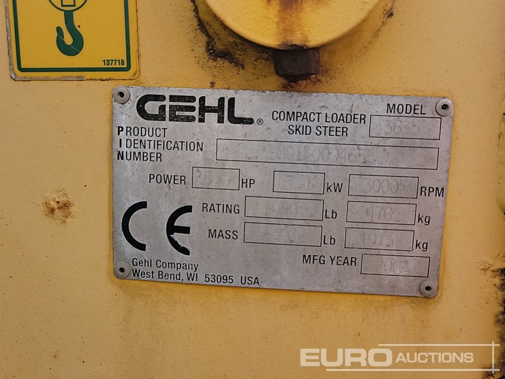 Gehl 3635 Skidsteer Loader, Piped, Forks - SM01K000465