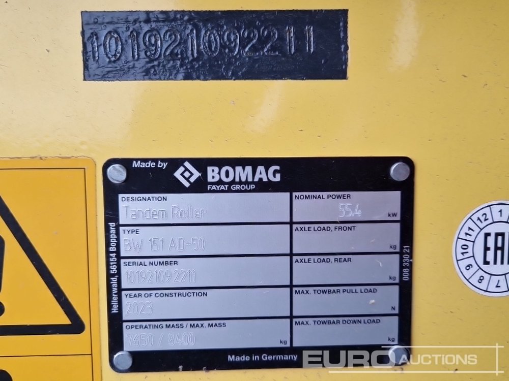 Unused Bomag BW151 AD-50 Double Drum Vibrating Roller - 101921092211