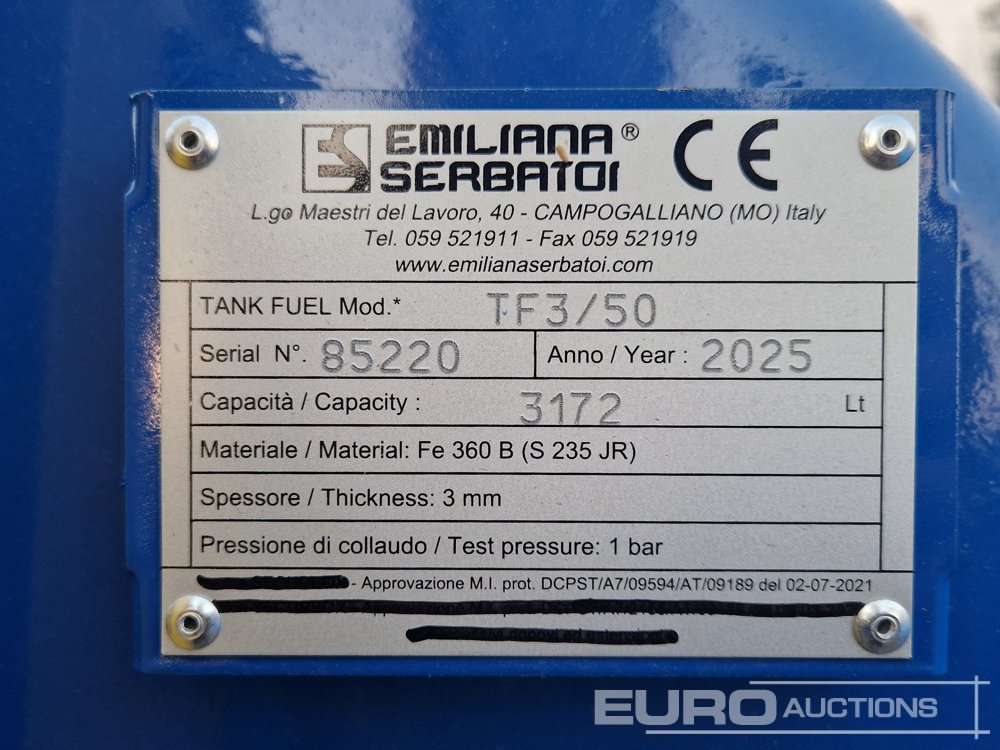 Unused Emiliana Serbatoi TF3/50 3,000Ltr. Fuel Bowser, Fuel Dispenser - 85220