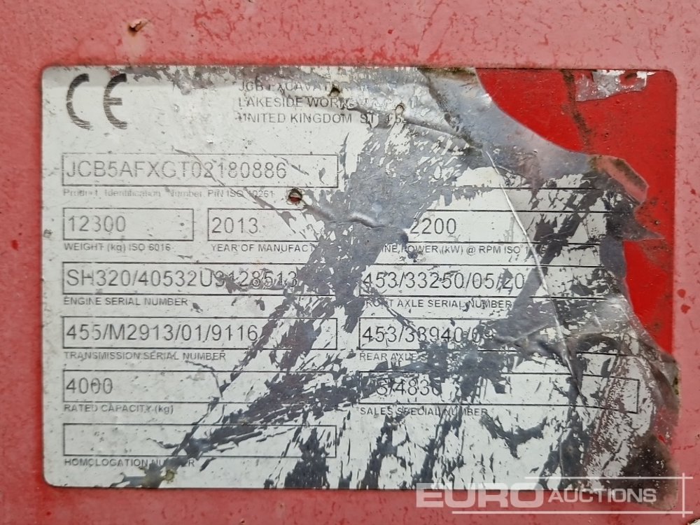 2013 JCB 540-170 Turbo Powershuft Telehandler, Joystick Control, Stabilisers, Sway, Piped, Forks, Forks Positioner, WLI - JCB5AFXGT02180886