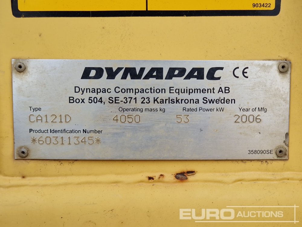 Dynapac CA121D Single Drum Vibrating Padfoot Roller, Dozer Blade, Roll Bar - 60311345