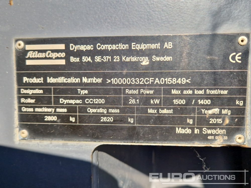 2015 Dynapac CC1200 Double Drum Vibrating Roller, Roll Bar - 10000332CFA015849