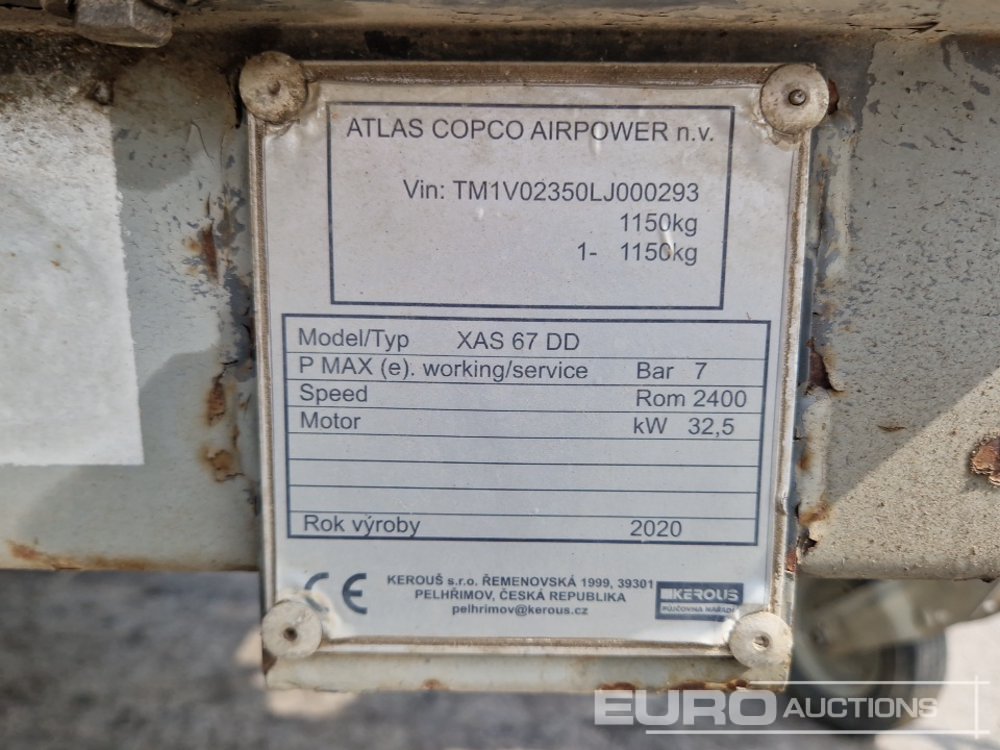 2020 Atlas Copco XAS 67 DD Single Axle Compressor, Generator - TM1V02350LJ000293