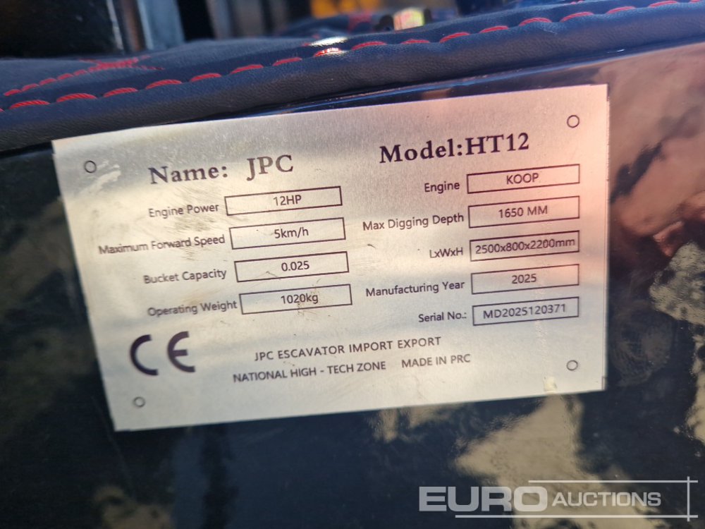 Unused 2025 JPC HT12 Rubber Tracks, Blade, Piped, Bucket - MD2025120371