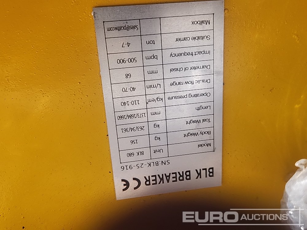 Unused BLK 680 Hydraulic Breaker 50mm Pin - BLK25916