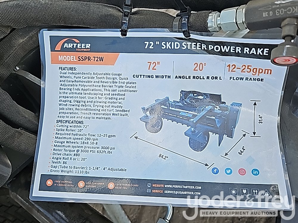 Unused 2025 Arteer SSPR-72W 72" Power Rake to suit Skidsteer - ART2025CK88803446