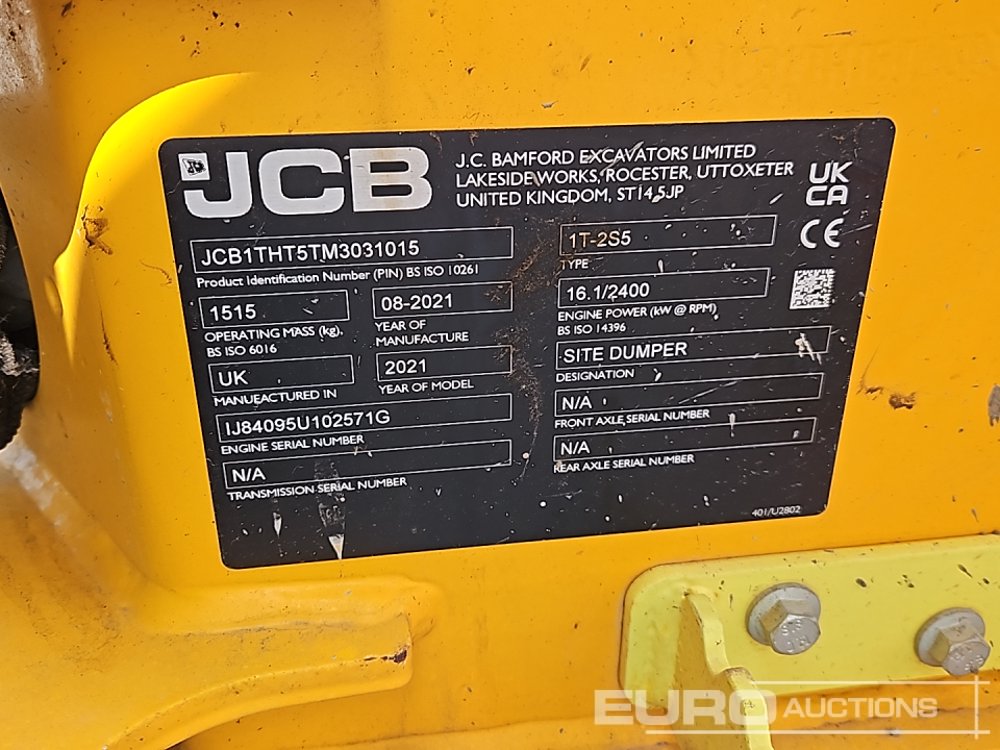 2021 JCB 1T-2S5 1 Ton Hi Tip Dumper, Roll Bar (Meter Reading: 600 Hours) - JCB1THT5TM3031015