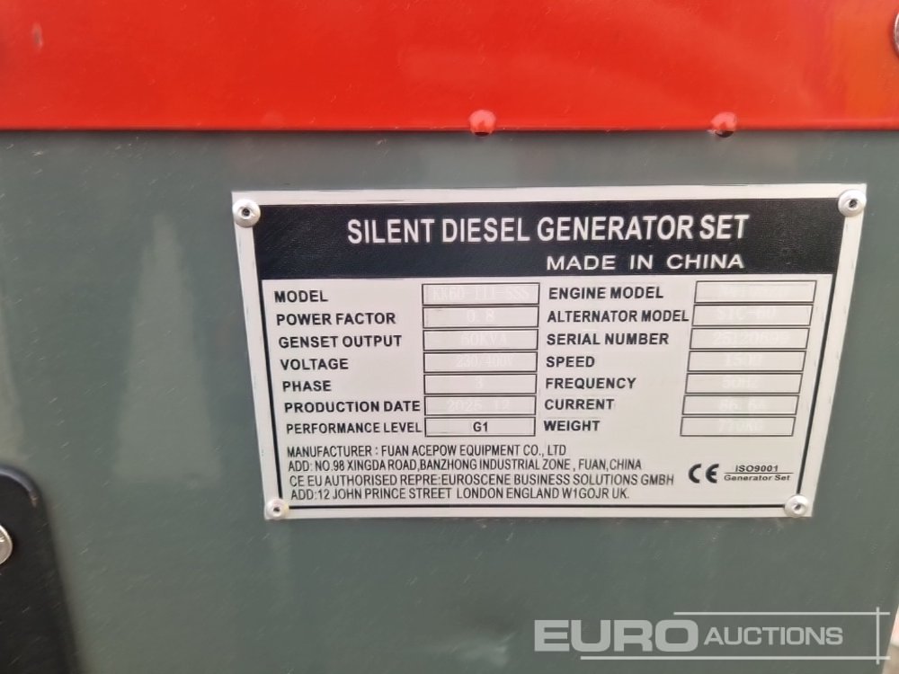 Unused 2025 Kawakenki KK60-III-SSS 60kVA Generator, 4 Cylinder Engine - 25120699