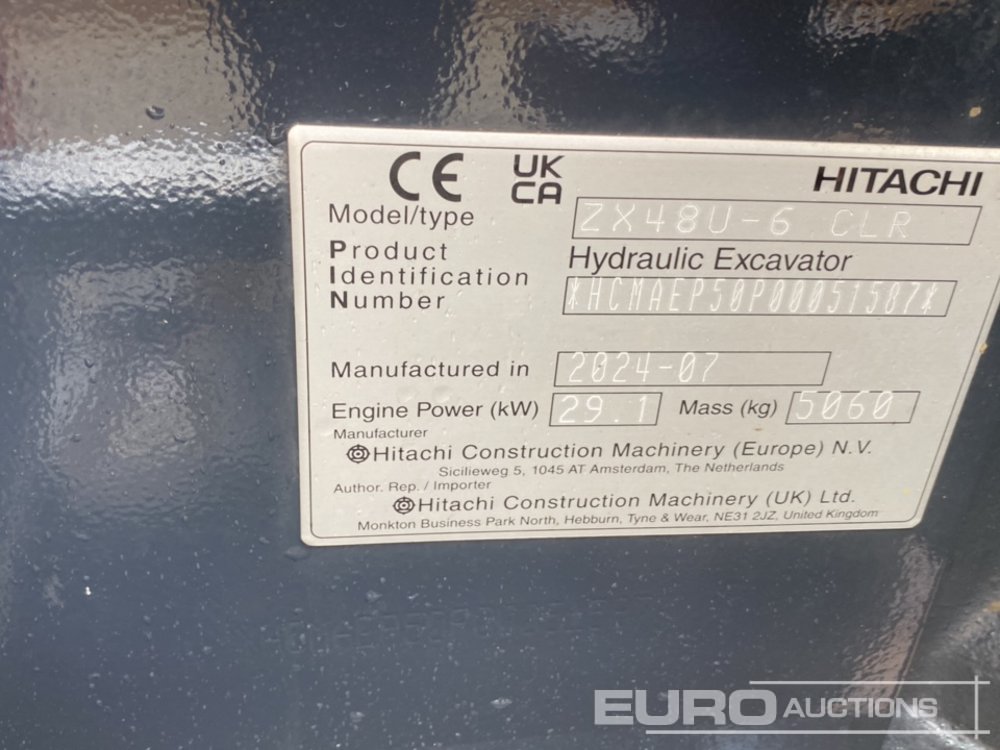 2024 Hitachi ZX48U Rubber Tracks, Blade, Offset, CV, QH, Piped, A/C (Meter Reading: 130 Hours) - HCMAEPJOP00051587