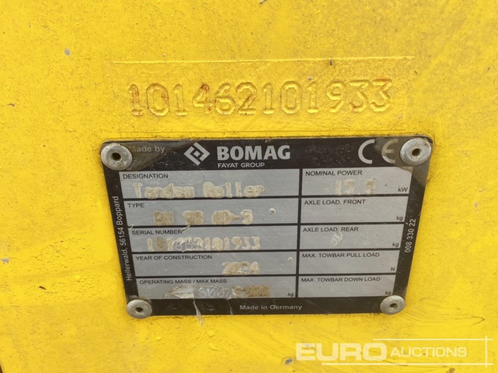 2024 Bomag BW90 AD-5 Double Drum Roller, Roll Bar (Meter Reading: 70 Hours) - 101463101933